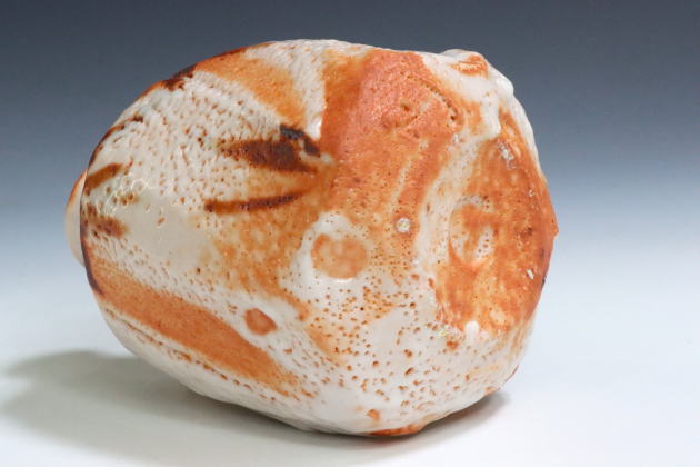 - 伝統的な技法を受け継ぎつつも創造性溢れる高い感性で新たな志野を発表しています。力強い造形と豪快な火色は見るものを惹きつけ、高い評価を得ています。近年は従来の志野をより変化させた「万葉志野」「群青志野」などを発表しています。