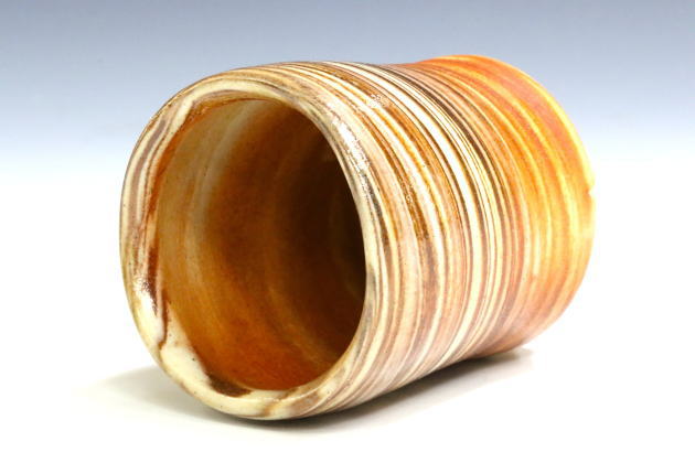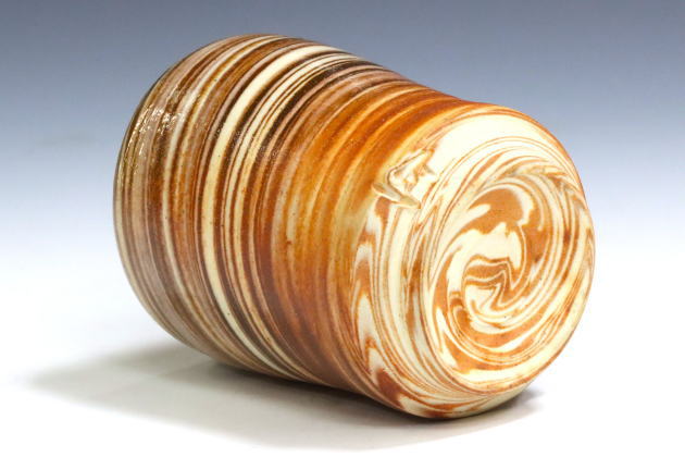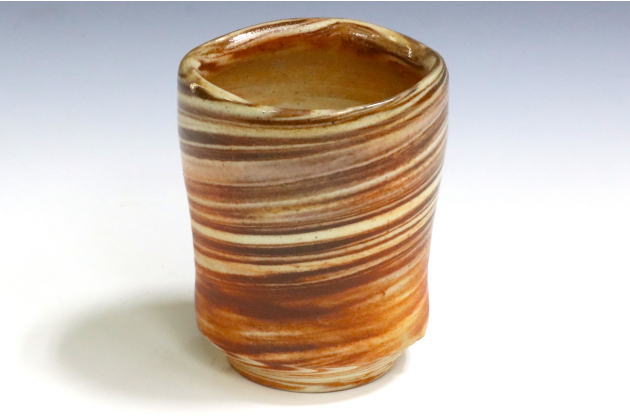 - 備前焼にとどまらず、様々な技法を駆使している作家です。 2種類の土を練り合わせる練り込みや、陶土にコバルトを混ぜた「藍彩」技法など、モダンな作風が人気です。口造りや高台のエッジも洗練されています。