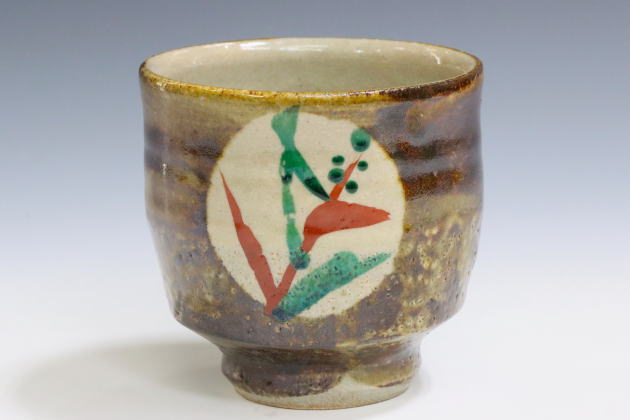 濱田庄司「柿釉抜絵湯呑-5」共箱[HAMADA Shoji]Tea cup