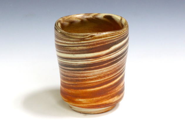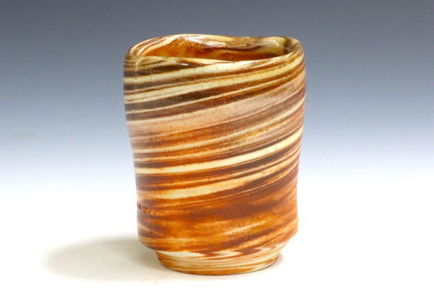 - 備前焼にとどまらず、様々な技法を駆使している作家です。 2種類の土を練り合わせる練り込みや、陶土にコバルトを混ぜた「藍彩」技法など、モダンな作風が人気です。口造りや高台のエッジも洗練されています。